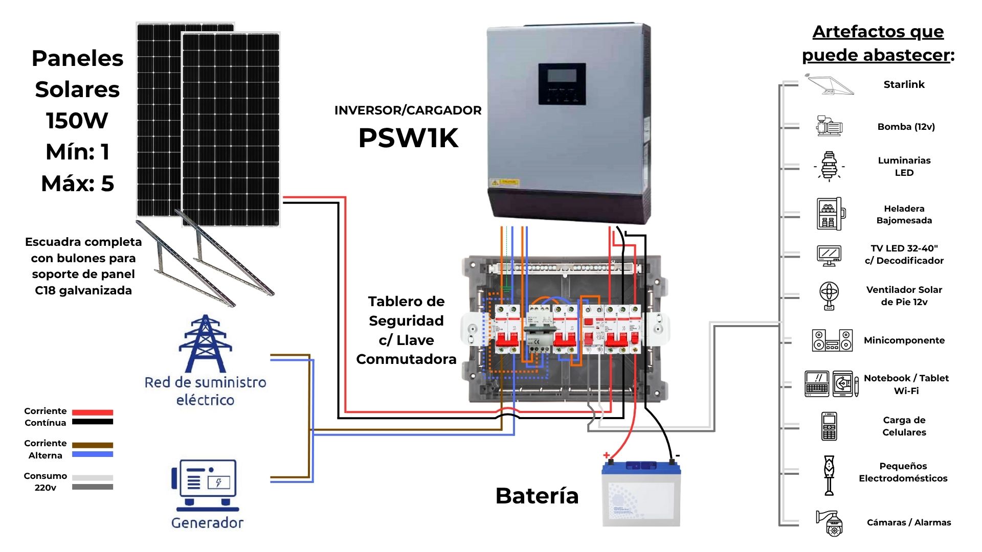 Inversor/Cargador 1KVA-1000W 50A PWM 12V Mod. PSW1K