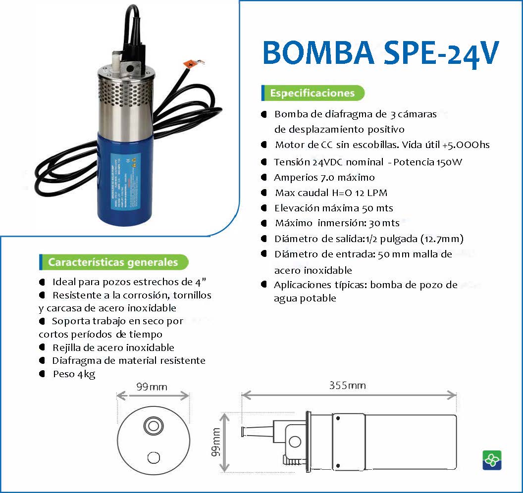 Bomba de diafragma 24VDC ideal para pozos de 4″, con carcasa de acero inoxidable, motor BRUSHLESS (sin escobillas y caudal de hasta 12 L/min. Resistente a la corrosión. Perfecta para agua potable y aplicaciones rurales.
