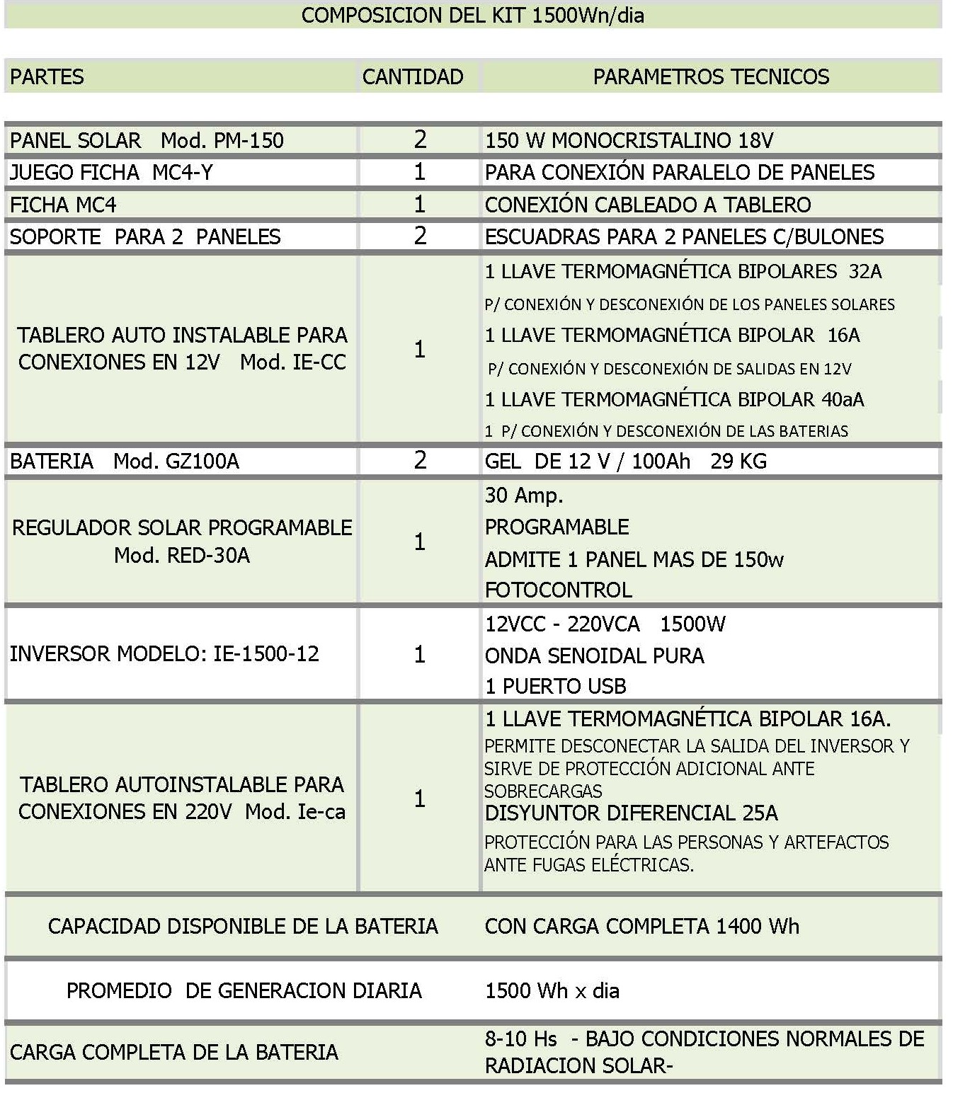 🔋 Incluye panel solar monocristalino, batería de alto rendimiento, regulador de carga y inversor de 1500W onda pura, garantizando energía estable y segura.