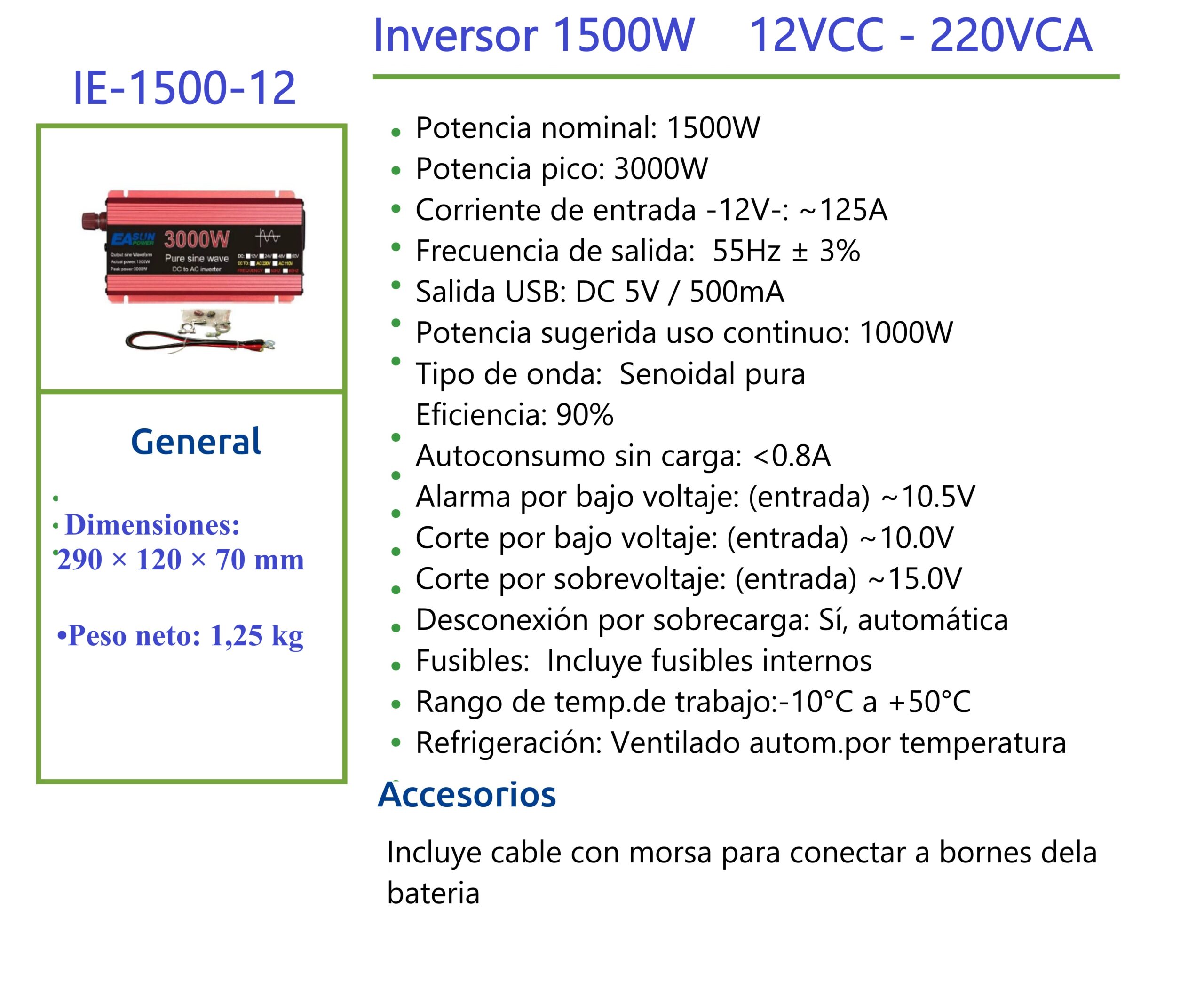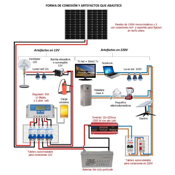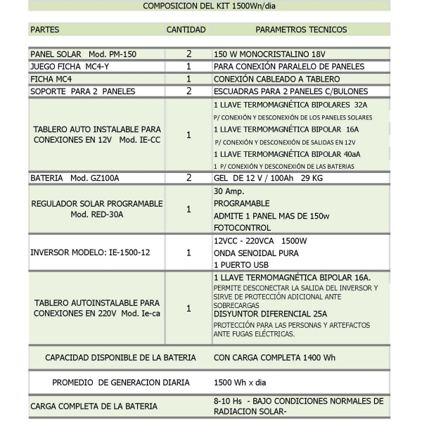 🔋 Incluye panel solar monocristalino, batería de alto rendimiento, regulador de carga y inversor de 1500W onda pura, garantizando energía estable y segura.