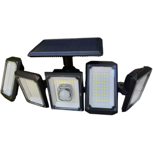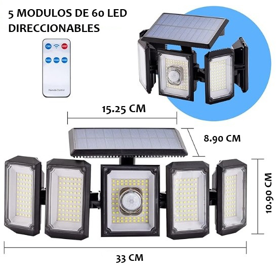 Ilumina tu hogar con energÃa renovable. Esta lámpara solar de 300 LED y 5 cabezales móviles ofrece 💡 3 modos de iluminación inteligente, 👀 sensor de movimiento de 3–5 m, y 📡 control remoto para mayor comodidad.