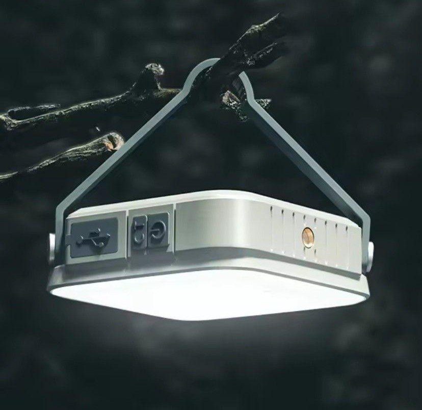 Lámpara solar recargable de 10W con batería dual (2x2000mAh) y panel solar integrado. Ofrece 3 modos de iluminación (alto, medio y bajo), puerto USB-A para cargar dispositivos y entrada USB-C. Autonomía de 6 a 48 horas, protección IPX5 y temperatura de luz entre 3500K y 6500K. Ideal para exteriores, con soporte plegable, indicador de batería y base con montura 1/4”.