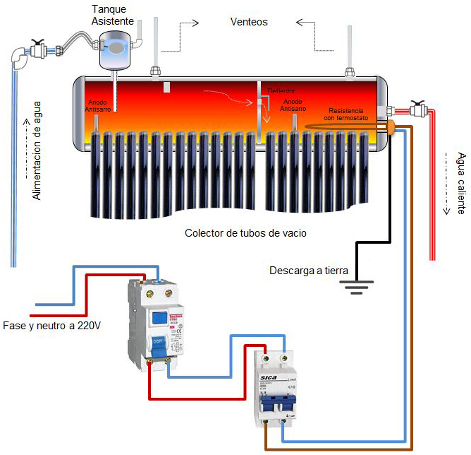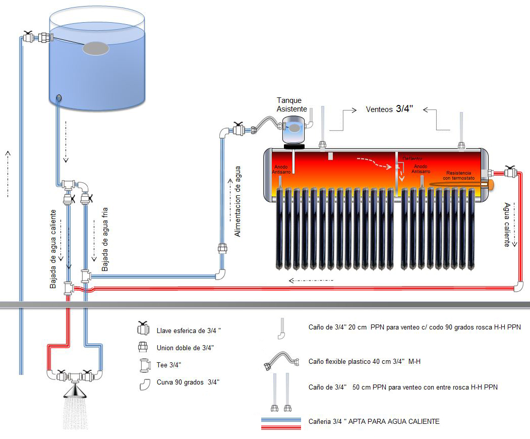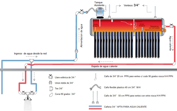 El agua se desplaza del colector (conjunto de tubos de vacío) hacia el tanque sin necesidad de bombas, componentes eléctricos o mecánicos.