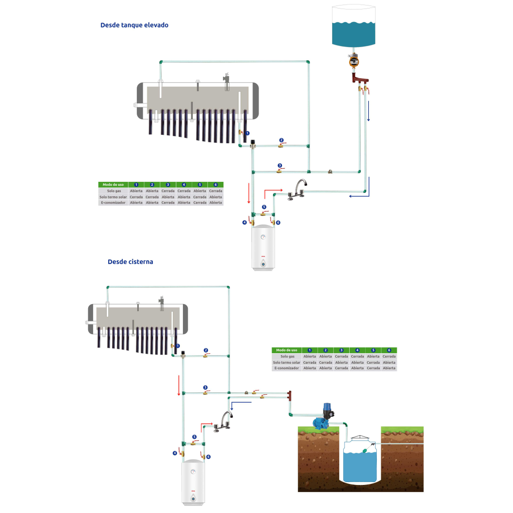 Su funcionamiento es totalmente AUTÓNOMO y no necesita del apoyo de un equipo auxiliar. No obstante, ante la imprevisibilidad climática siempre es aconsejable mantener su sistema tradicional para cubrir contingencias. Su calefón o termotanque tradicional pasará a ser como la rueda de auxilio de su vehículo, el uso quedará limitado a cubrir emergencias. De no contar con esta alternativa contamos con los kits eléctricos y CONTROLADORES ELECTRÓNICOS que optimizan el uso y además convierten el termotanque solar en un calentador autonomo con apoyo electrico incorporado para uso eventual .