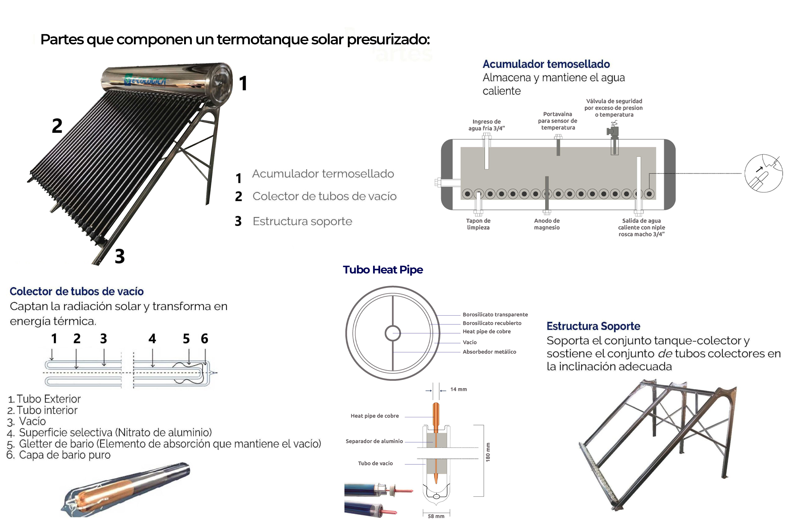 Tubo interior: recibe el calor atrapado y lo transfiere al tubo de calor (HEAT PIPE) que se encuentra en su interior del mismo.