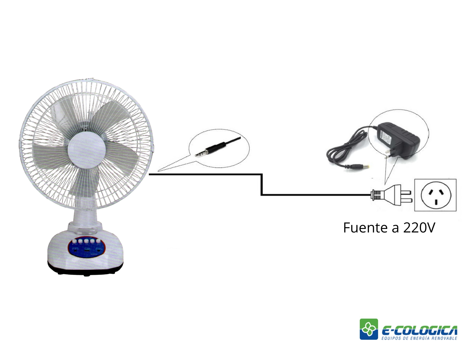 Ventilador Solar de mesa de 12″ (30cm) de diametro 6W de potencia, con 3 velocidades, giro de 120°, con luz led incorporada, regulable en inclinación.