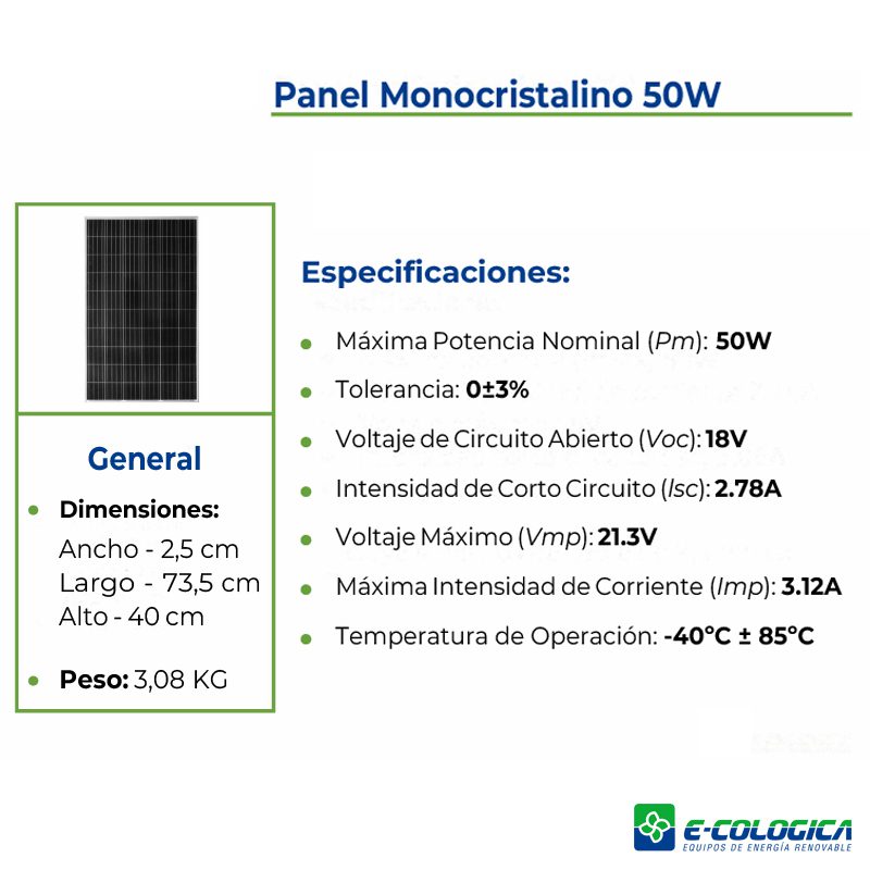- Funciona durante el horario diurno conectado en forma directa a un panel solar de 50 W ( incluido).