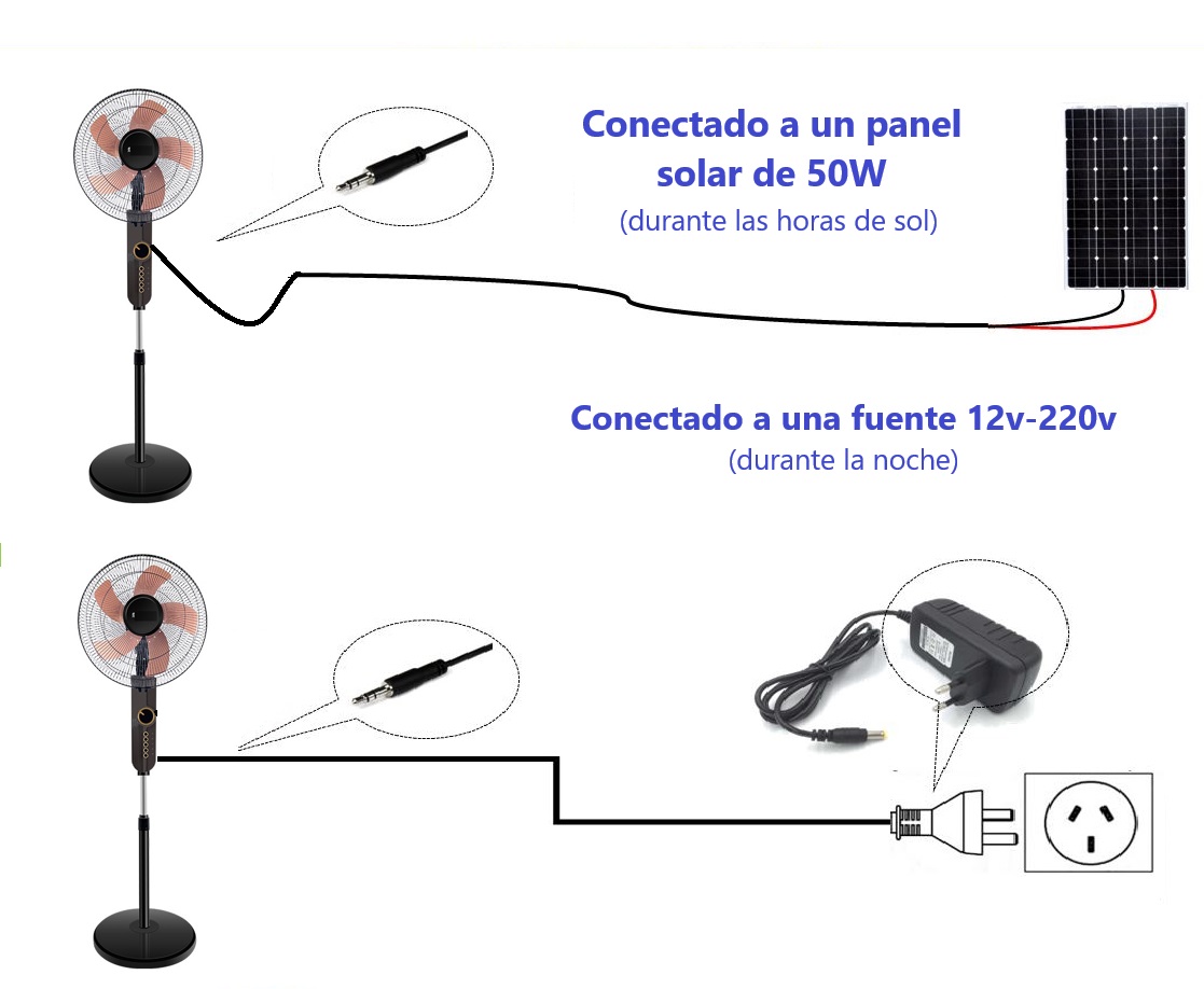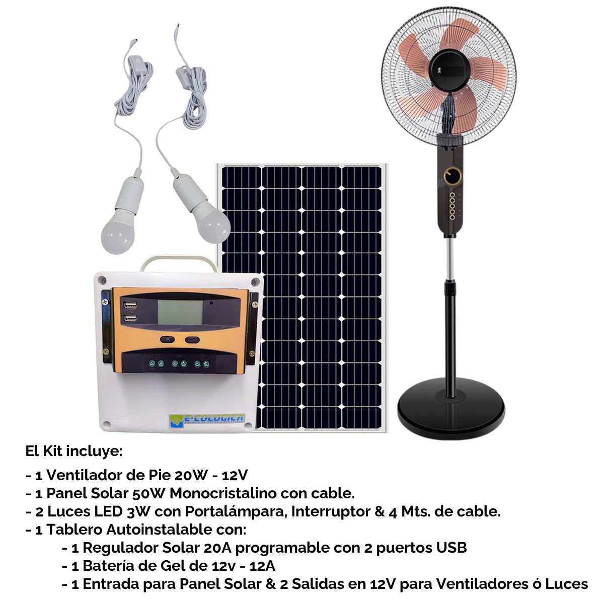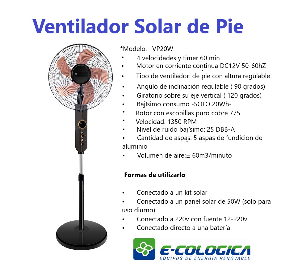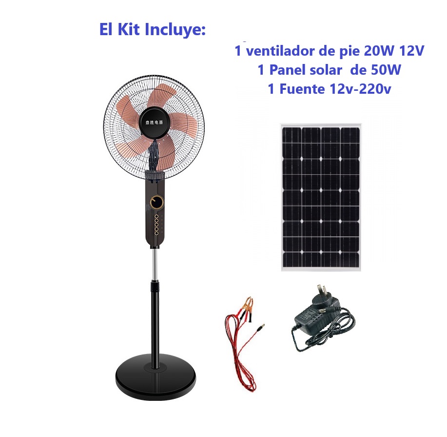 🌬️ Ventilador Solar de Pie 16″ – 12V & 220V ☀️⚡